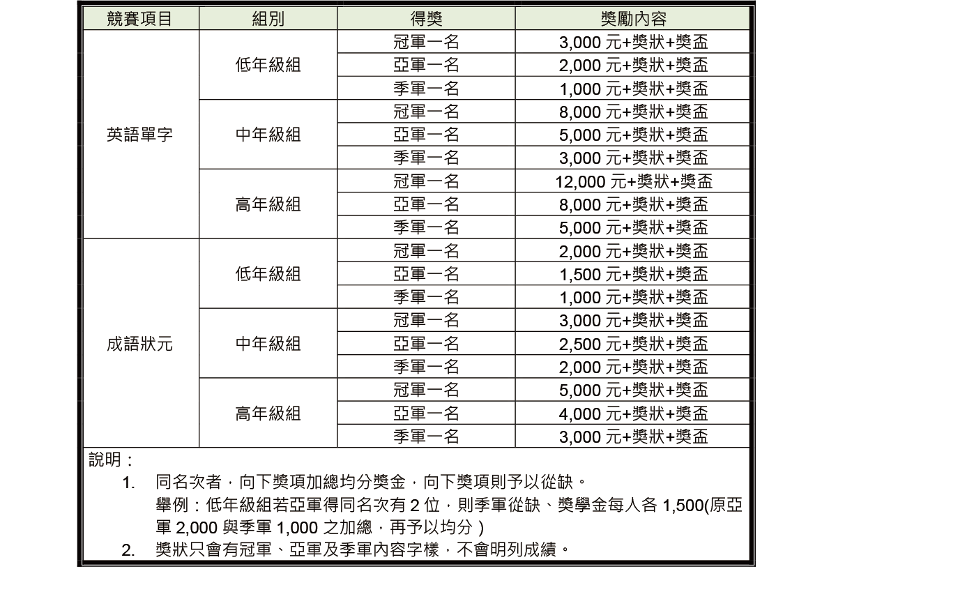 2.六年級(畢業生)獎勵統一寄到考生家裡。