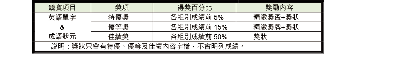 (3)英文競賽範圍是依照700-2200單字本作為命題方向。