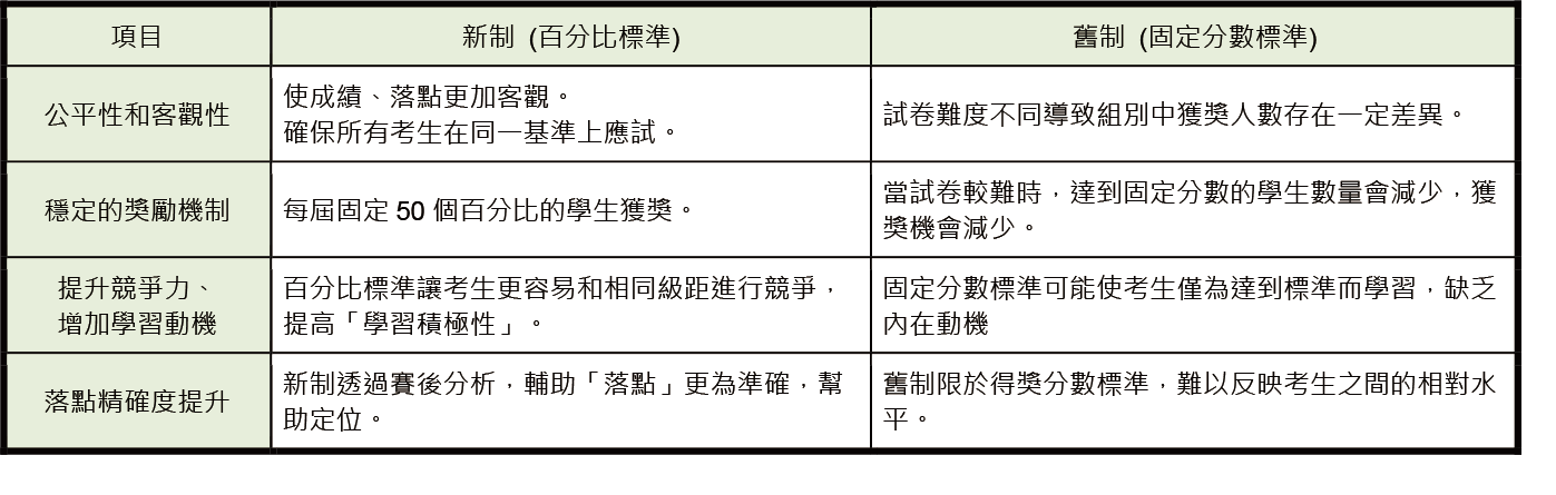 A31 新制度依照成績百分比發放獎勵,更公平客觀,確保在不同試卷難度下有著「穩定性」和「激勵作用」。
